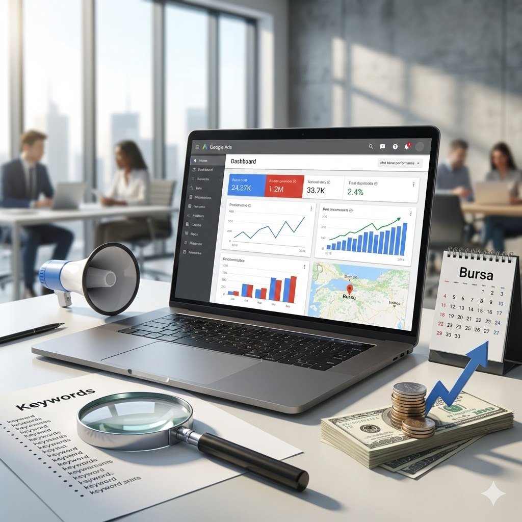 Bursa merkezli bir dijital ajans olarak, reklam bütçenizi bir “gider” kalemi olmaktan çıkarıp, ölçülebilir ve sürdürülebilir bir “yatırım” aracına dönüştürüyoruz. Google’ın devasa ekosisteminde doğru anahtar kelimeyle, doğru zamanda ve doğru bütçeyle yer almanızı sağlıyoruz.